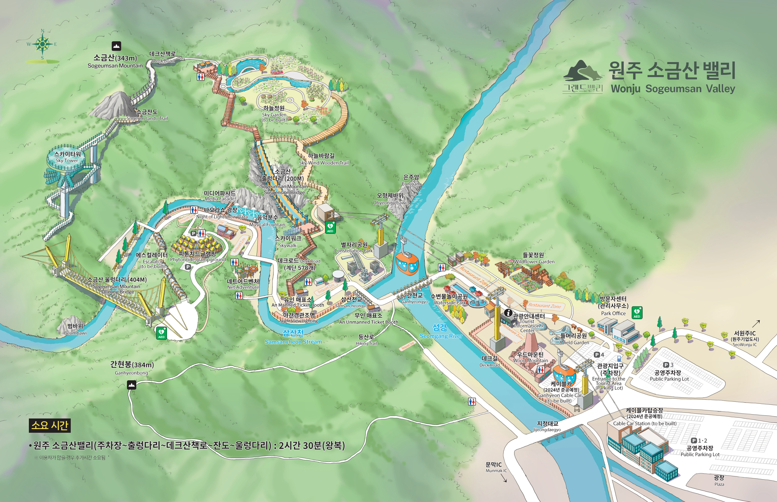 소금산 출렁다리 개장 이후 원주를 대표하는 관광지로 자리잡은 간현관광지에 전국 어디에도 볼 수 없는 다양한 시설들을 추가 설치하여 스릴 넘치는 경험과 소금산·간현산의 절경과 함께 힐링 할 수 있는 프리미엄 복합문화 관광지입니다.